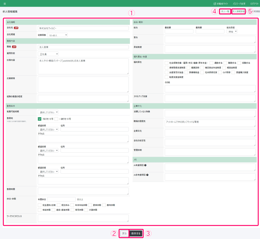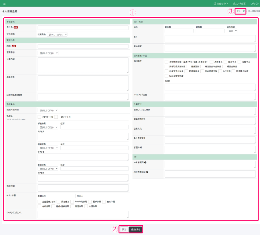 求人案件管理は登録されている求人情報を一覧で表示します。