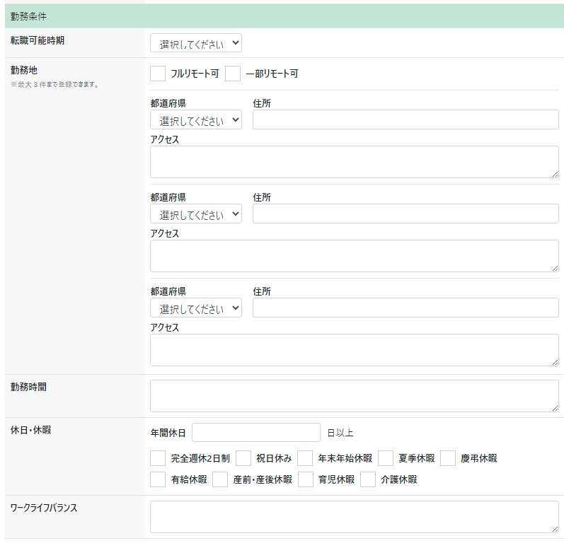 クリックすると職種/経験年数の入力欄が下に追加されます。