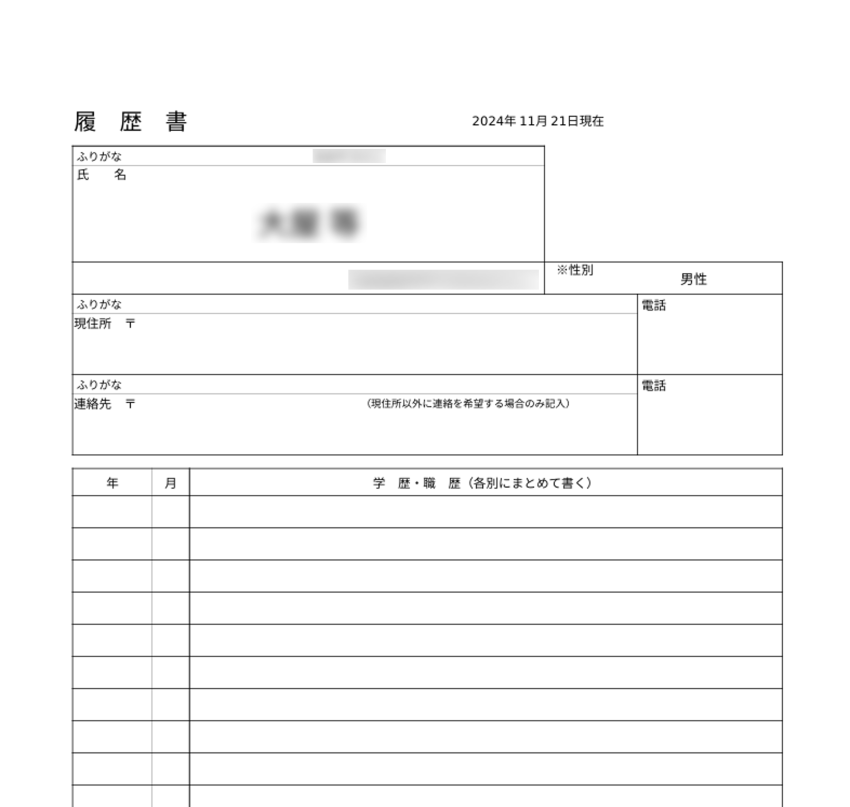 (履歴書または職務経歴書でないPDFファイルを選択した場合、内容は解析できません。)