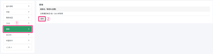 1.資格が保存されていない場合、資格の項目をクリックすると表示されます。