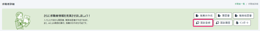 (求職者詳細の「面談登録」の場合は求職者詳細の表示に戻ります。)