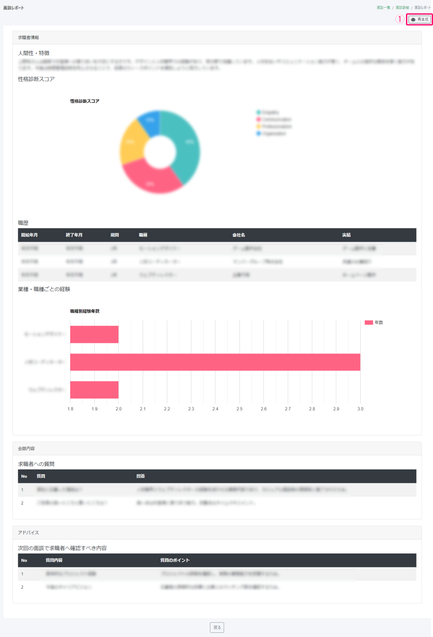 面談詳細の「レポート生成」をクリックすることで表示されます。