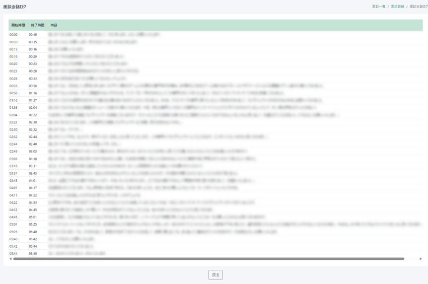 クリックすると面談の録音を保存して面談詳細の画面に戻ります。